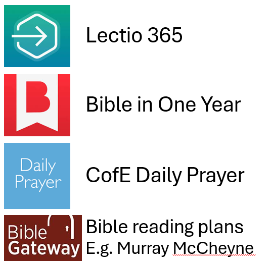 Sometimes we recognise that we don’t share John’s certainty. Jesus’ own pattern was to take time to be alone with his heavenly Father each day and pray. The Church has followed His example by setting up daily patterns of prayer and Bible reading. Last Sunday I suggested four examples to try - there’s a picture below. Wednesday 18th February is Ash Wednesday (the day after Shrove Tuesday - Pancake Day) and the beginning of Lent, which is a season of reflection and preparation for Easter. You might like to take up a new daily pattern for this time?