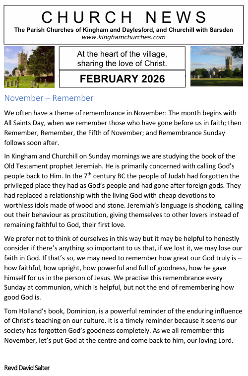 Welcome to the Parish Churches of Kingham, Daylesford, and Churchill with Sarsden.